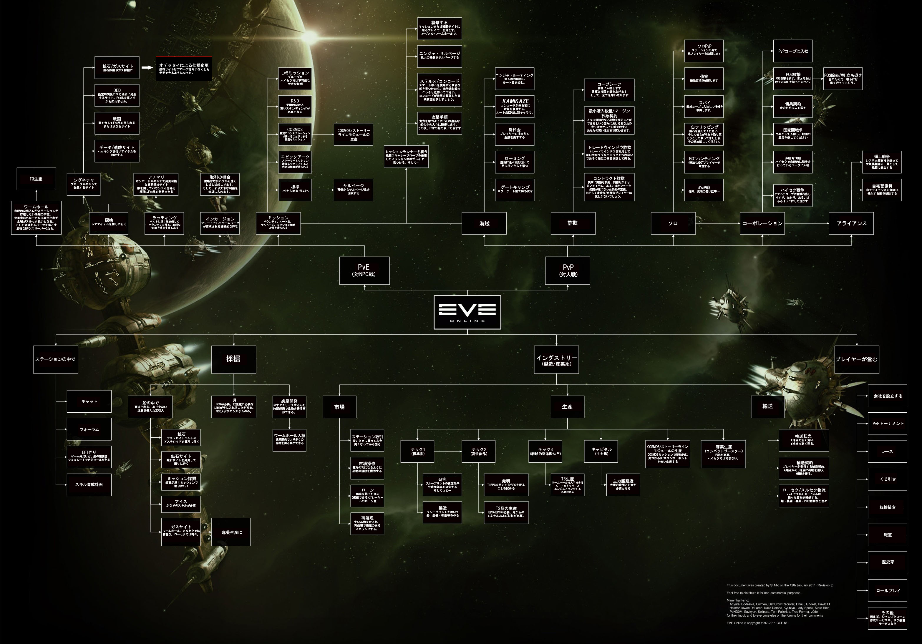 EVE 2013/07/22 EVEでは何ができるの? 例のアレを日本語化してみたよ。(翻訳怪しい所があったらご容赦を)色々なコンテンツを遊んでみたいですね。PVPやインカージョン、あと詐欺とか :D元の英語版はこちら。