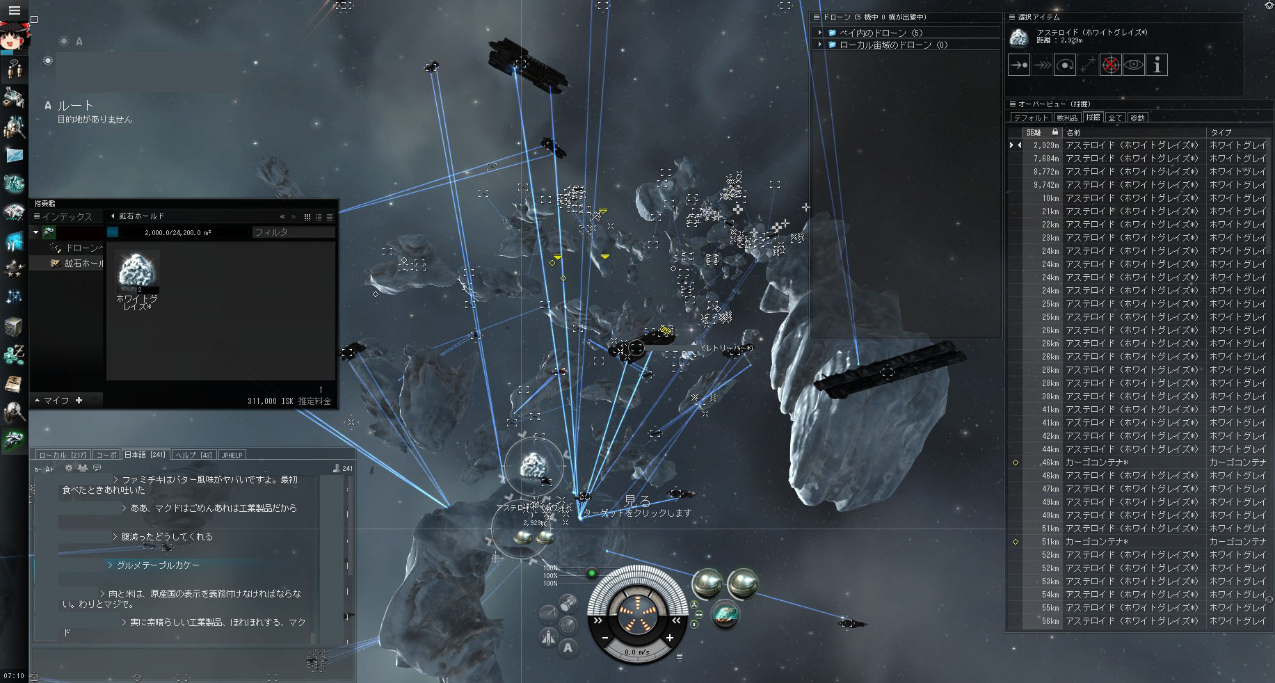 EVE 2013/05/24 ニューエデン経済学Lv1 EVEでは船やら装備やら弾薬に至るまで、すべてプレイヤーの手で生産されてます。今私が乗ってる船も、世界中の誰かが採掘した鉱石で誰かが精錬した原料で誰かが設計図と共に工場ラインに放り込んで生産されたものということ。なかなか感慨深いですね~。このため、マーケットの中心地では価格競争の結果安く買い物ができたり、イベントで特定のアイテムの需要が高まって品薄になったり、船や装備の能力修正が行われて評価が変わって値段がガラリと変動したり、別アカの買い注文で相場を操作して大量の利益を上げる猛者が居たり、惑星資源の利権争いが発端となり銀河のアウターリングで紛争が起きたり…EVEには経済学者の監修が入っていることもあり、現実さながらのリアルな経済戦争も楽しめます。(まぁ、現実の戦争も経済が発端ですからね)さて来月、そんなEVEに大型のアップデートが訪れます。探検系のコンテンツ強化ということですが、資源採掘や艦船の能力など様々な箇所にも調整が入るそうです。そうなると、気になるのは市場の変化。強化される船は値段が上がり、弱体化される船は値段が下がる等々なるのですが……。 ねぇきみたち、他にやること無いの?(^ω^;)アイスっていうのがあってね。それが爆値上がりしてるの。これはケイ酸塩と結合して結晶化したガスの塊で、精錬したものはキャピタル艦のジャンプドライブの燃料になったり、POSっていうプレイヤーが建てられる宇宙ステーションの燃料になったりする。つまり燃料なので、宇宙の何処でも、常に一定量の需要がある物質ということ。今まではこれが「楽して掘る事ができた」んだけど、今度からは「掘るのがちょっと面倒になる」っていう調整が入ってしまった。ってことになると、供給が減って相場が上がることが予想されるので今のうちに買占めが発生して値段が昇竜拳になってそれに釣られた採掘家業の連中がこぞってアイス堀りに勤しむという光景に至ったわけでございます。なのでほぅら、ちょっと視線を奥に向けると……空飛ぶガスコンロみたいな形をした採掘艦がわんさかと!(白い四角アイコンがプレイヤーの船だよ)アイスは普通の鉱石と違い、事実上一つの塊から無限に掘れるので、これだけ居ても取り合いになることは殆ど無いそうです。6月上旬のアップデートまで、宇宙のあちこちでこの光景は見られるでしょう。(観光名所風に) PR