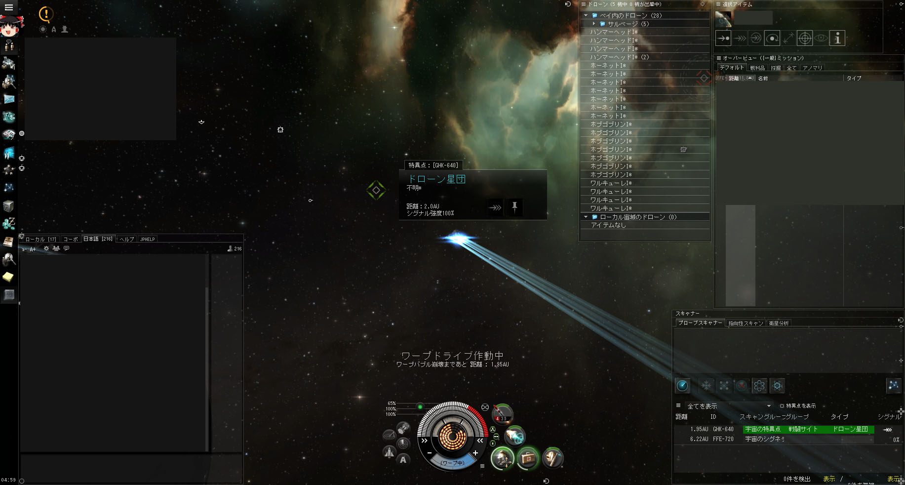 EVE 2013/06/09 おでっせーい というわけで、オデッセイがやってまいりました。この日のために探検用フリゲートを組んで待っていたので、日々色々弄くり触りしてます。上の画像はスキャン時の画面。以前のものよりもゲージが色つきになってとても見やすくなってますね。プローブのフォーメーションがあったり、各種サイト名も変更されたり。ふむふむ。 そう!これこれ!ハッキングがミニゲームになったみたいですね。10連でできるので、ちょっと試しにやってみたところ。ああ…、ハッキング成功時に散らばるゴミコンテナ…回収めんどくさいですね_(:3」∠)_サイトはオンボードスキャン時に画面上に出てくるようになったようです。かっこいい!システムに入ったときに自動で行われるので、より一層効率が良くなった感じがします。お馴染みの戦闘サイト系はプローブ無しで突入可。まぁ、アップデート直後だからか、お邪魔したサイト全部に先客が居ましたけどね!( ´・ω・`)<ぼくにもやらせてよー他にもジャンプ時のエフェクトが変わってたり、船の能力値が変わってたり、事前情報で告知されていた通りにアイスベルトがお亡くなりになられてたり…。これを機にちょっと探検をしばらくやってみようかと思います。ほら、あれだ、お宝探しってロマンがあるじゃん? :D PR
