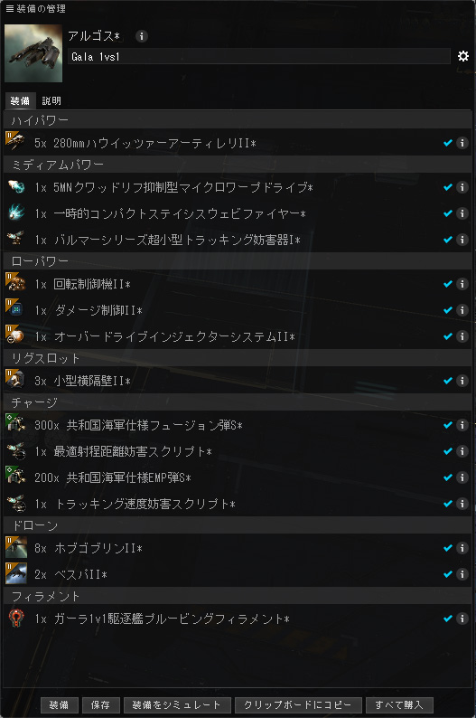 https://zkillboard.com/kill/98916152/・アーティアルゴスRank8プレイヤー、Rank10プレイヤー(私)のメタ。ドローンによる全方位火力とアーティレリによる中距離火力がメイン。