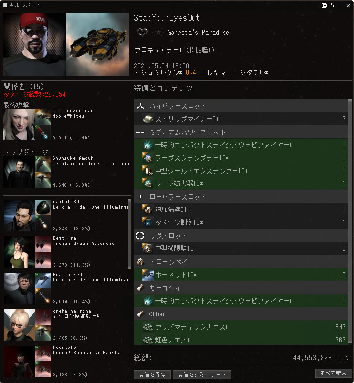 PVP 2021/05/05 フリゲートの大群でヴェドマックを轢き殺してきました フリゲート艦隊でヴェドマックとバトルプロキュアラーを倒してきました!(*´ω`*) もちろんBattleプロキュアラーも美味しく頂きました(*'ω'*) キルレポはこちら ◆この日のローミングの戦果まとめ(zKillbord)カルダリ海軍仕様フックビルhttps://zkillboard.com/kill/92587874/ポクヴェン帰りのグノーシスhttps://zkillboard.com/kill/92588104/ヴェドマック!https://zkillboard.com/kill/92588469/バトルFitのプロキュアラーhttps://zkillboard.com/kill/92588480/ニュービートリスタンhttps://zkillboard.com/kill/92590245/gf! gf!最強の船はフレンドシップですね!(^ω^)ローミングの戦闘はまとめて動画化しようと思います! PR